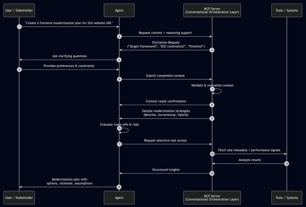 Frontend modernization planning shows how MCP enables structured, explainable decision-making, not just smarter tool calls.